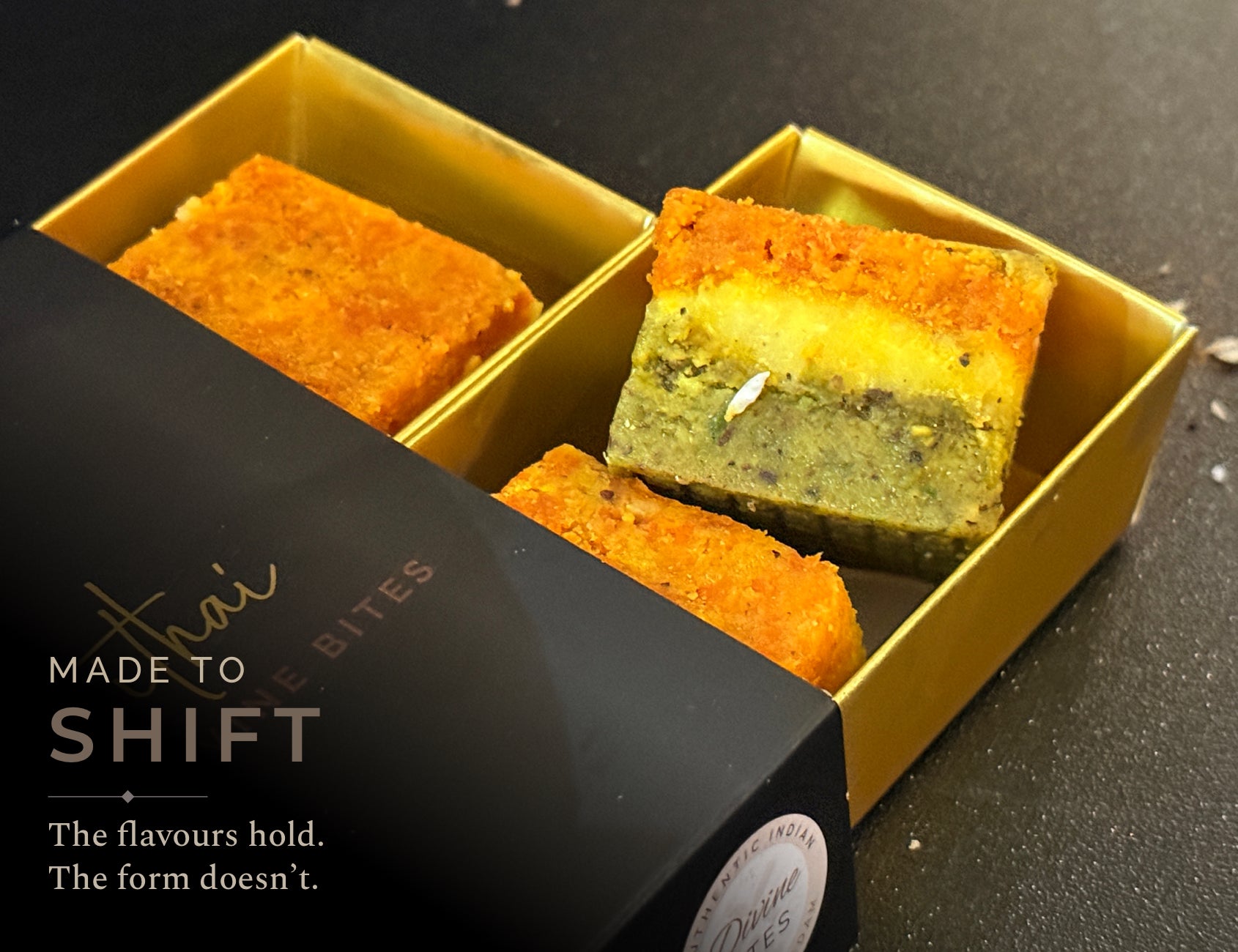 - Three Indian sweets blended into one seamless experience
