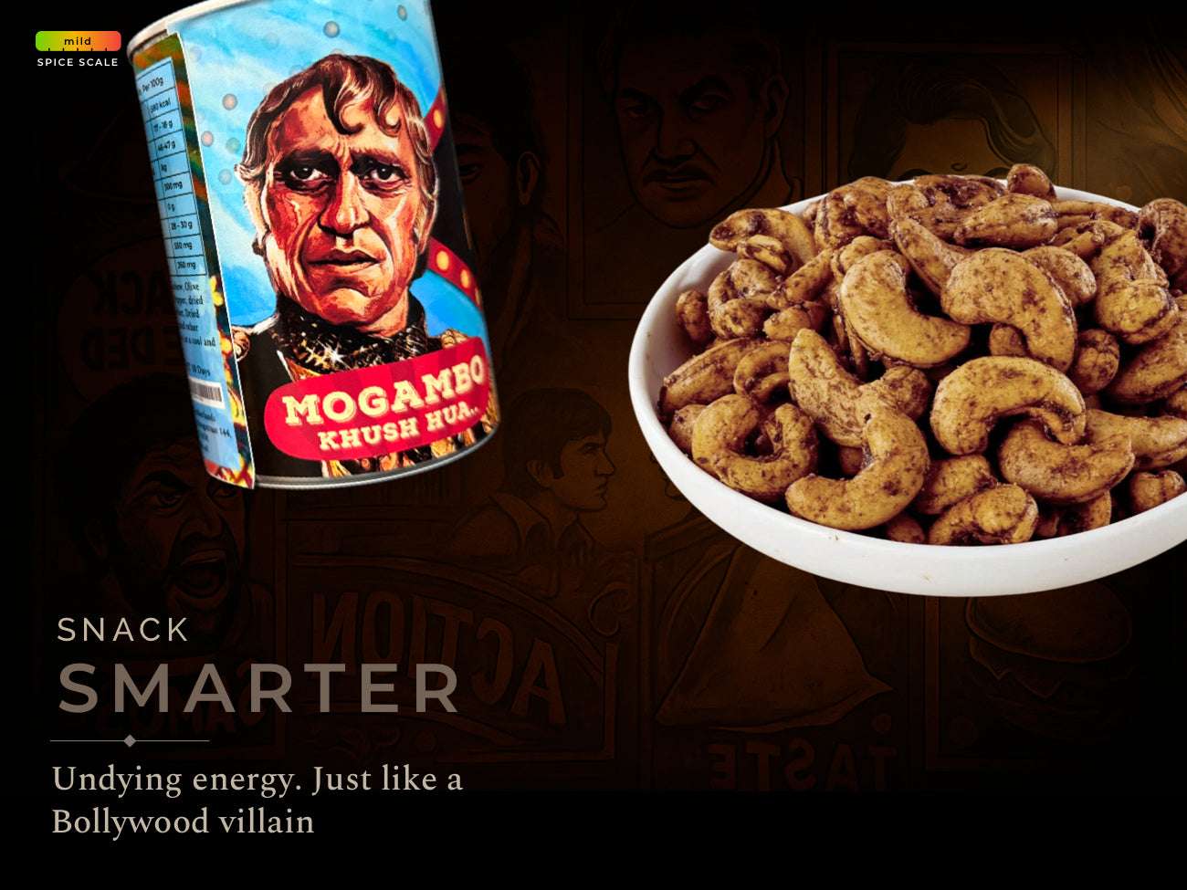 Cashew Nuts, Olive oil, Amchoor (Dried Mango Powder), Cumin Seeds, Coriander Seeds, Black Salt, Black Pepper, Dry Ginger Powder, Cinnamon
